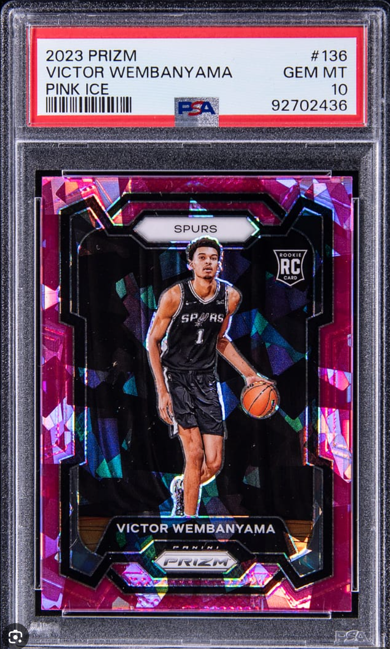 His rookie cards, especially premium versions like the Prizm Pink Cracked Ice, have become coveted collectibles among aficionados. Prizm cards stand out as some of the most sought-after in the hobby due to their refined design, exclusive parallels, and fervent appeal to fans. A Wembanyama Pink Cracked Ice card graded at a pristine PSA 10 represents the pinnacle of such treasures, boasting impeccable condition and captivating aesthetics that instantaneously elevate any collection. These cards are already commanding substantial worth in the market, and with Wembanyama's limitless potential, their value is projected to ascend even further.