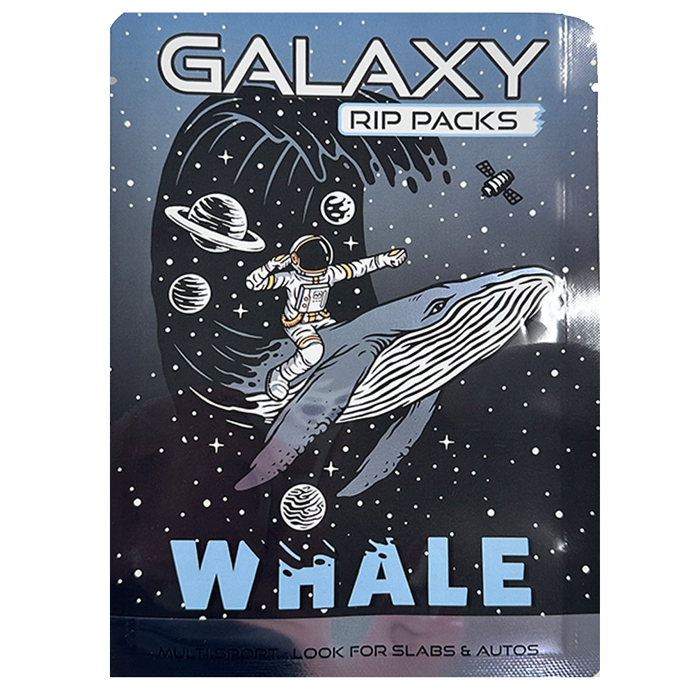 Key Features of the Galaxy Rip Pack Whale Edition include a Premium Selection of high-quality cards across a wide range of sports. Whether raw or graded, each card is handpicked for its superior condition, value, and desirability, ensuring that every pack contains a gem worthy of admiration.